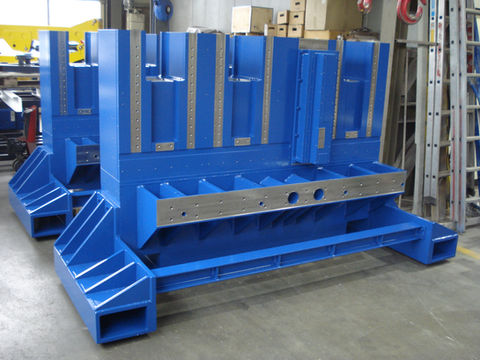 Grosse Teile sind unsere Spezialität. Werkstücke von 6'000 bis 18'000 mm können wir auf vier Portalbearbeitungsmaschinen bearbeiten, auf fünf Seiten gleichzeitig und in einer Aufspannung. Selbstverständlich ist auch die entsprechende Krankapazität — bis 60 Tonnen — vorhanden.